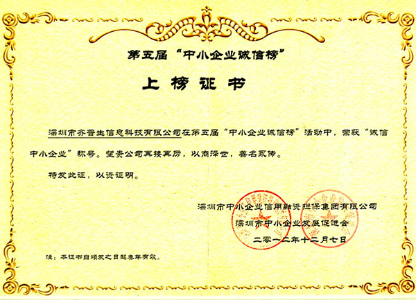• 誠(chéng)信中小企業(yè)證書(shū)