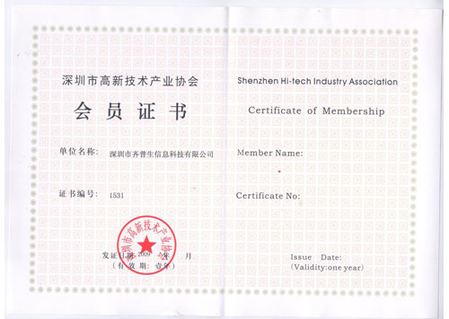 • 深圳市高新技術(shù)產(chǎn)業(yè)協(xié)會(huì)會(huì)員證書(shū)