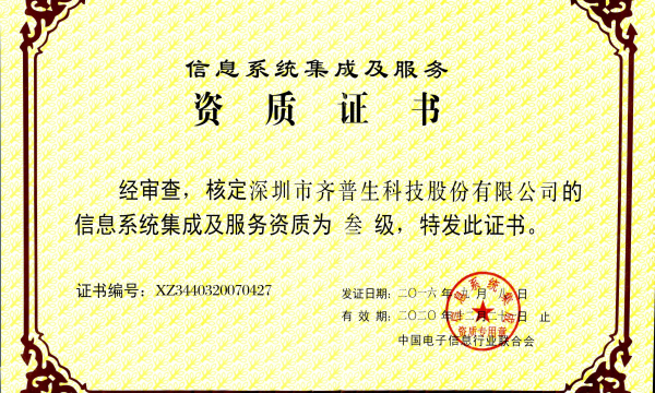 • 計(jì)算機(jī)信息系統(tǒng)集成三級(jí)資質(zhì)