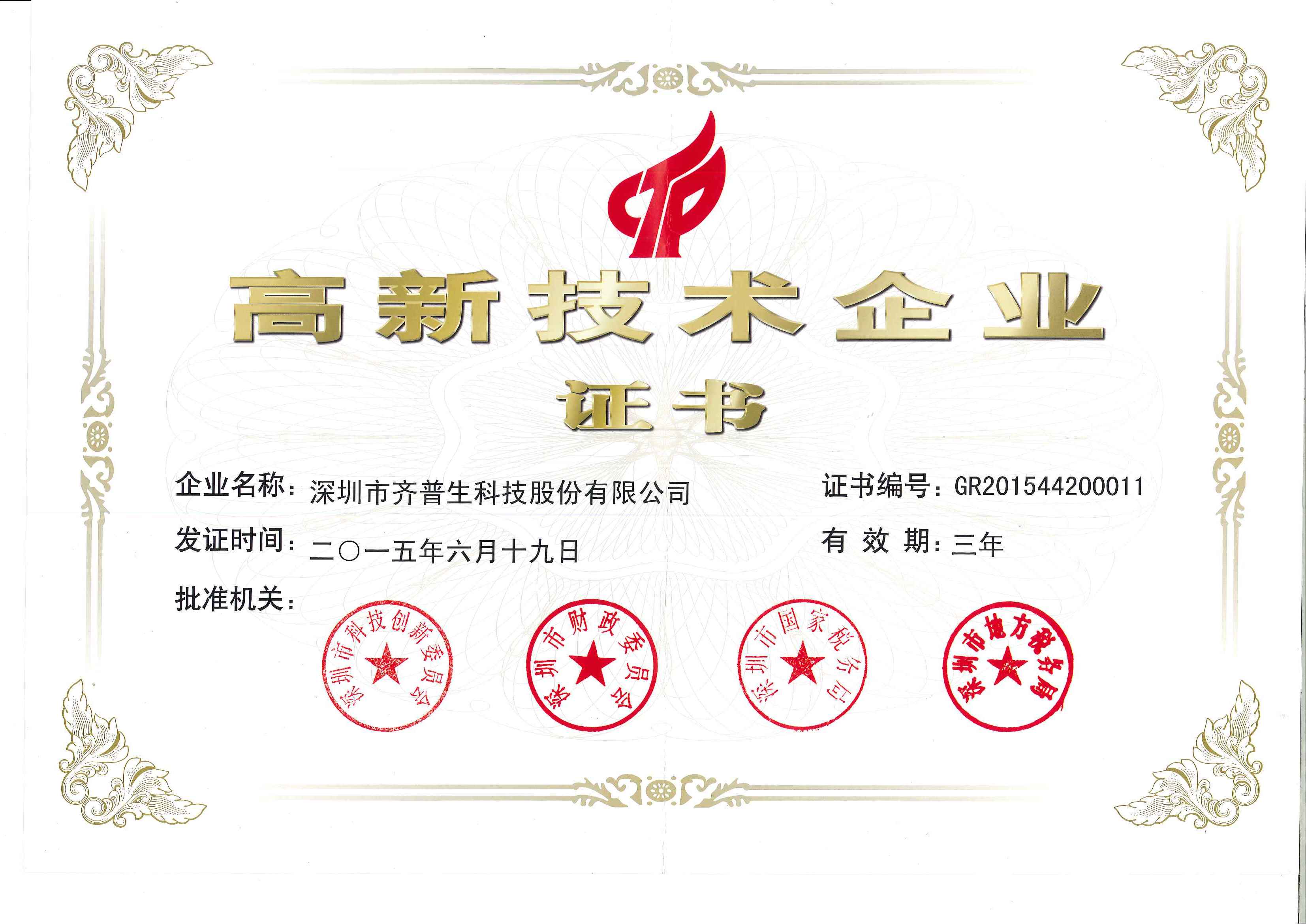 • 國(guó)家級(jí)高新技術(shù)企業(yè)證書(shū)